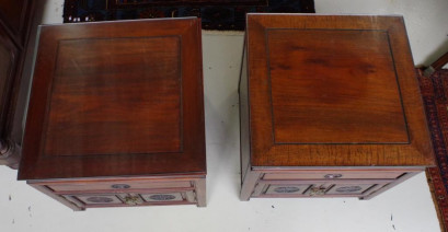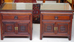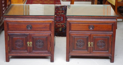 each with 1 drawer, 2 doors and glass top, 56cm wide, 56cm deep, 56cm high approx -