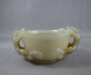 Lot Description:Chinese Qing Dynasty, Celadon Jade twin Handled Wine Cup