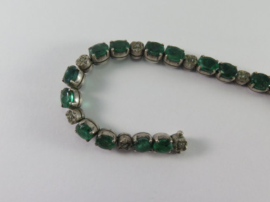 twenty-four oval emeralds and twelve diamonds; silver. Estimated total weight of emeralds 24 = 8.4ct. -