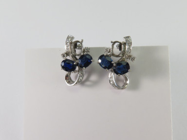 Lot Description:A Pair of Sapphire and Diamond Ear-Clips