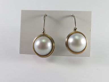 Lot #211 - A Pair of Double-Sided Mabe Pearl and Gold Earrings