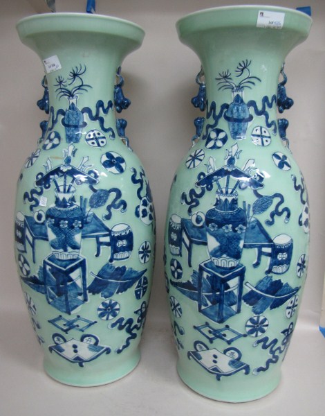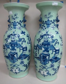 Lot Description:Pair of Large Chinese Porcelain Blue and White Vases