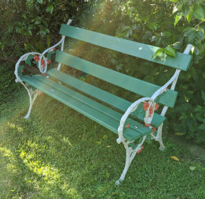 Lot Description:A Cast Iron Garden Bench with Painted Berry Detail