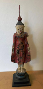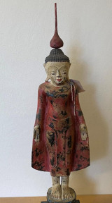 Lot Description:Burmese carved timber standing Buddha