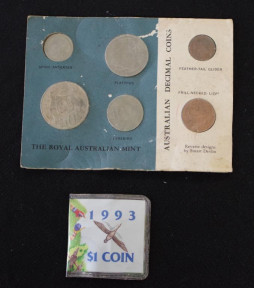 (packaging dirty and water damaged), together with a 1993 commemorative $1 coin -
