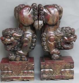 Lot Description:Pair of Unusual Chinese Lacquered Kylins