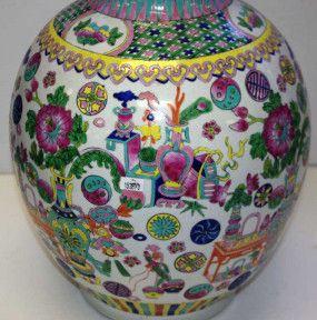 with floral and various panel decoration, reign mark to base, height 59cm approx -