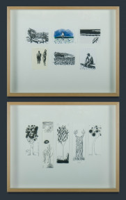 "6 Views of Wylies Baths", 2008, ink on paper (42x52cm framed); & "Bookmarks 1", 2008, ink on paper (42x52cm framed). (2) -