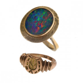 Together with a 9ct yellow gold set with ten 12mm opal doublet ring. W5.79g (approx) -