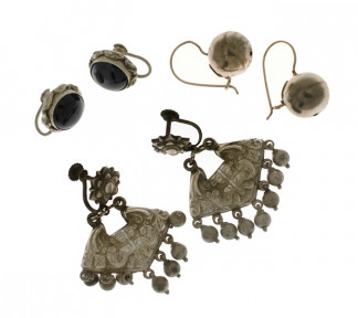 Incl. Italian balldrops; studio work style; & Asian with drops, (later brass screws). W28.2g (approx). -