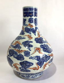 Lot Description:A Blue & Orange Vase Featuring Dragons Flying